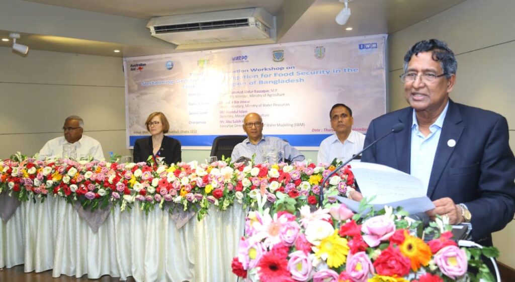 আজ বৃহস্পতিবার সকালে রাজধানীর মহাখালীতে ব্র্যাক সেন্টার সম্মেলন কক্ষে বাংলাদেশের উত্তর-পশ্চিমাঞ্চলে ‘খাদ্য নিরাপত্তায় ভূগর্ভস্থ পানির টেকসই ব্যবস্থাপনা’ শীর্ষক গবেষণা প্রকল্পের উপর কর্মশালায় প্রধান অতিথির বক্তব্যে মন্ত্রী এসব কথা বলেন। বাংলাদেশ কৃষি বিশ্ববিদ্যালয় ও অস্ট্রেলিয়ার কমনওয়েলথ সায়েন্টিফিক এন্ড ইন্ডাস্ট্রিয়াল রিসার্চ অর্গানাইজেশন এর সহযোগিতায় ইনস্টিটিউট অব ওয়াটার মডেলিং এ কর্মশালার আয়োজন করে।