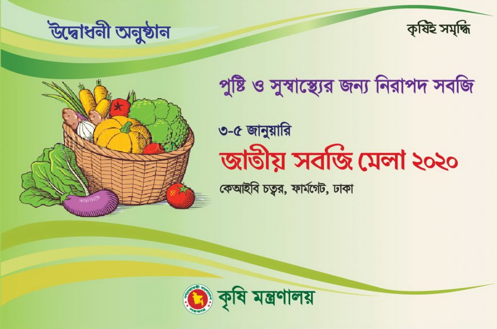সবজি মেলা শুরু ঃআগামী ০৩-০৫ জানুয়ারি ২০২০ খ্রি: তারিখ রাজধানীর ফার্মগেটের কৃষিবিদ ইনস্টিটিউশন বাংলাদেশ (কেআইবি) চত্বরে ‘জাতীয় সবজি মেলা ২০২০’ এর আয়োজন করা হয়েছে। ০৩ জানুয়ারি শুক্রবার বিকাল ৩:৩০ টায় মাননীয় কৃষিমন্ত্রী ড. মোঃ আব্দুর রাজ্জাক এমপি প্রধান অতিথি হিসেবে ‘জাতীয় সবজি মেলা ২০২০’ এর উদ্বোধন করবেন।